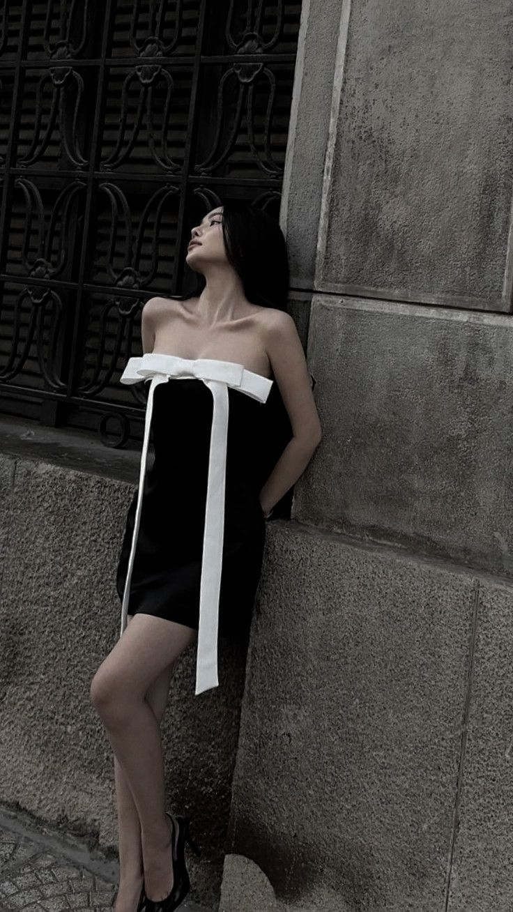 Stylish A Line Strapless Black Satin Cocktail Dress Short Homecoming Dress Y9454
