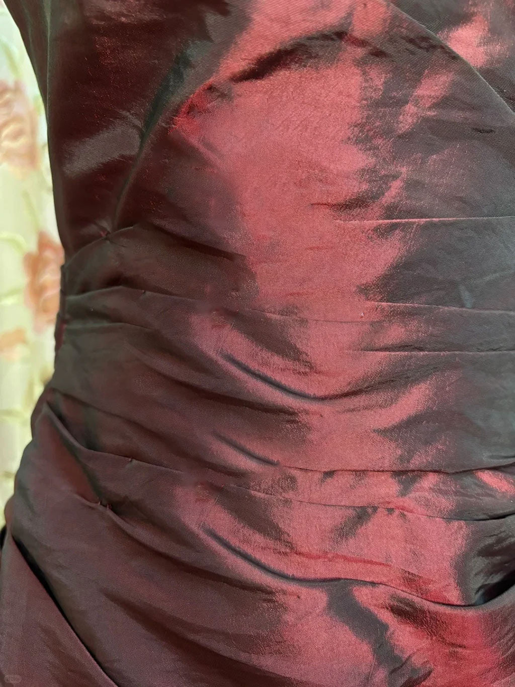 Stylish Strapless Red Satin Pleated Mermaid Evening Dress Long Birthday Prom Dresses SP942