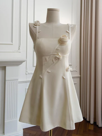 Sweet Flower Beige Satin Mini Party Dress Homecoming Dress Y8822