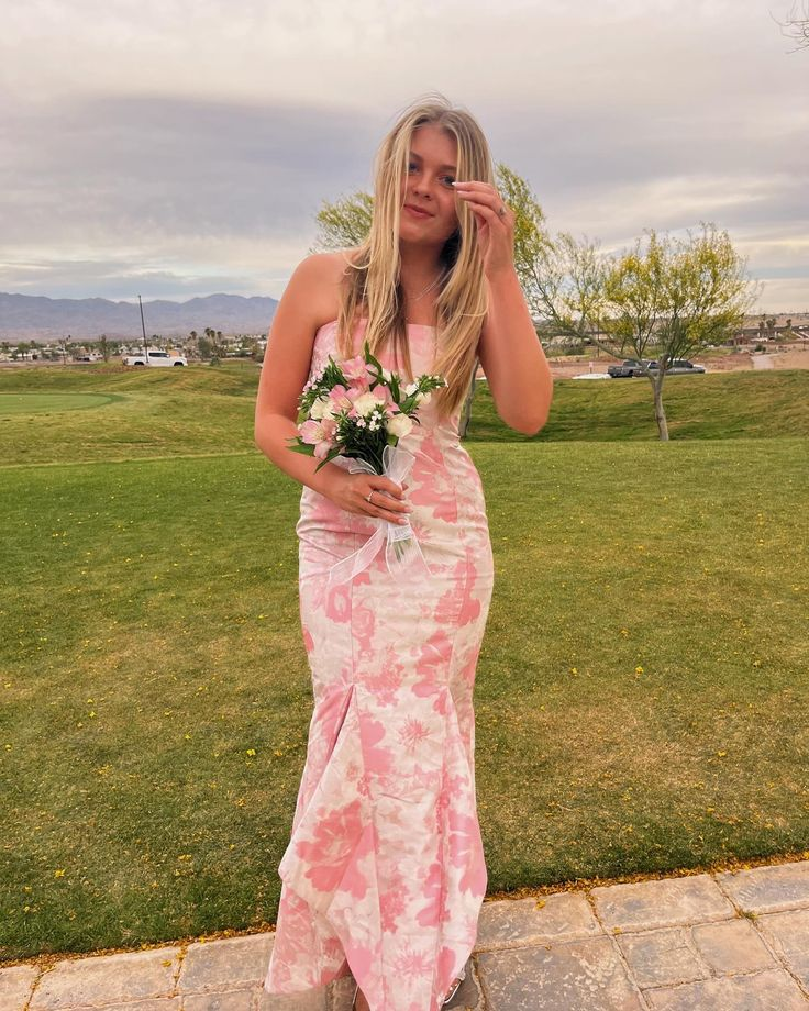 Sweet Pink Satin Print Floral Evening Dress Mermaid Prom Dress Y7828