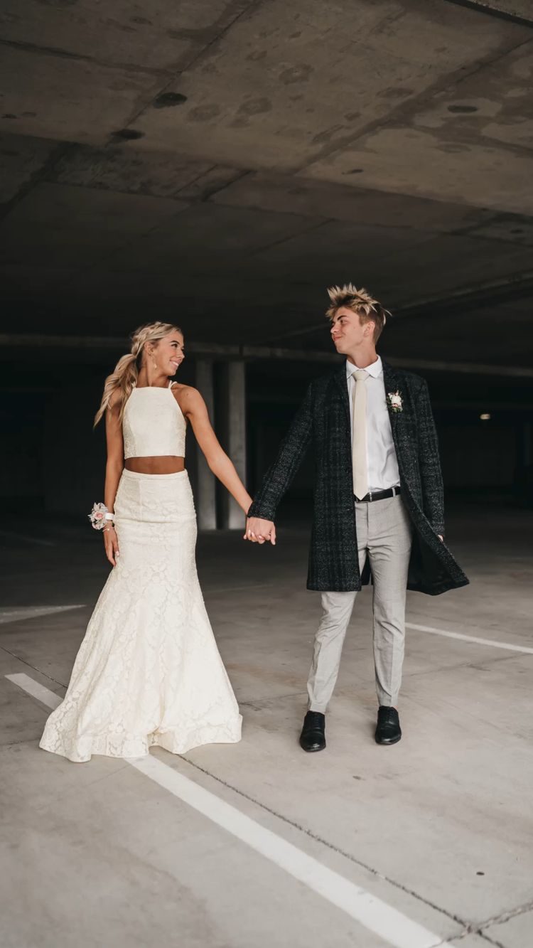 Two Piece Mermaid White Lace Senior Prom Dress Elegant Evening Dress Y489