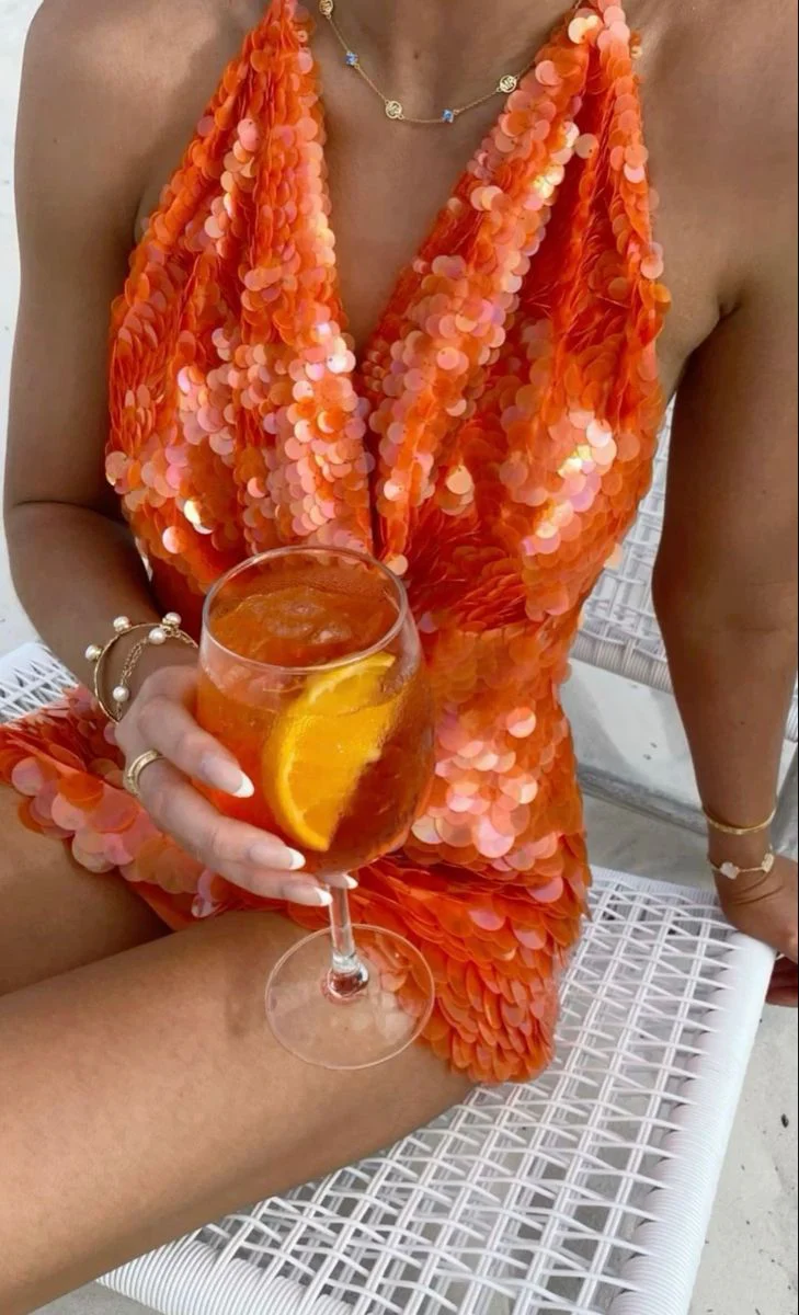 Unique Orange halter Sequin Backless Short Cocktail Dress Homecoming Dress Y9890