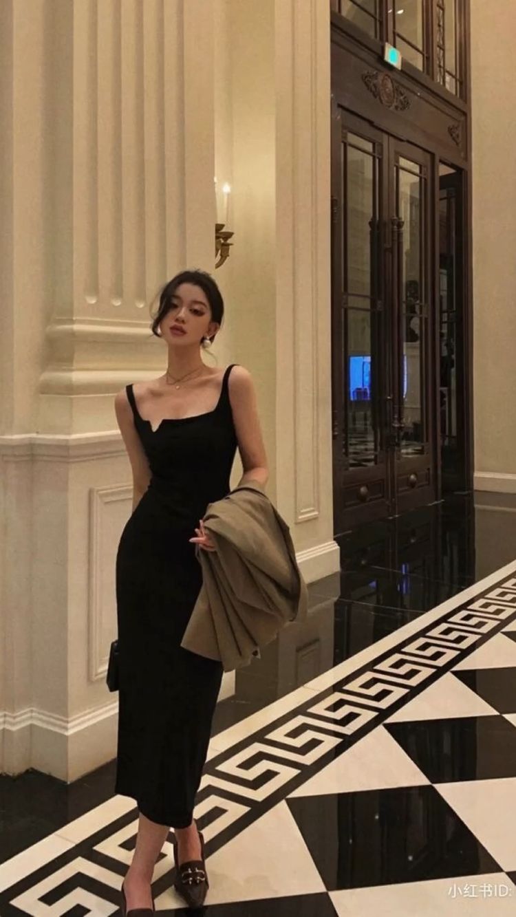 Vintage Black Sleeveless Evening Dress,New Year Outfit Dress Y1359