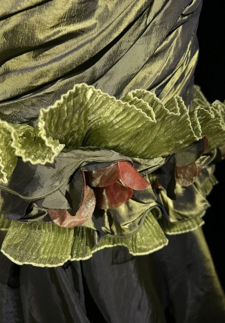 Vintage Dark Green Irregular Neckline Satin Beaded Evening Dress,Ruched Mermaid Prom Dress Y8560