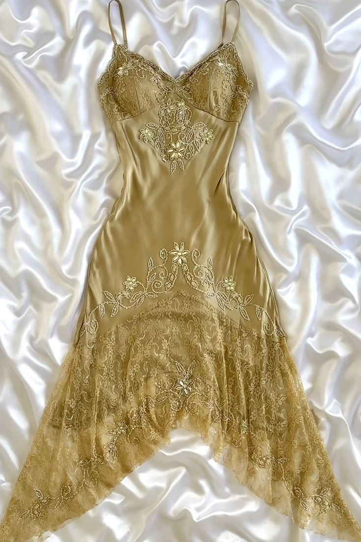 Vintage Gold Satin Lace Beaded Sheath Cocktail Dress Short Formal Graduation Homecoming Dress Y9231