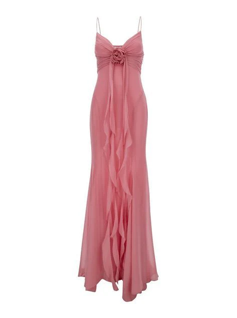 Vintage Mermaid Spaghetti Straps Pink Chiffon Prom Dress Evening Gown Y8494