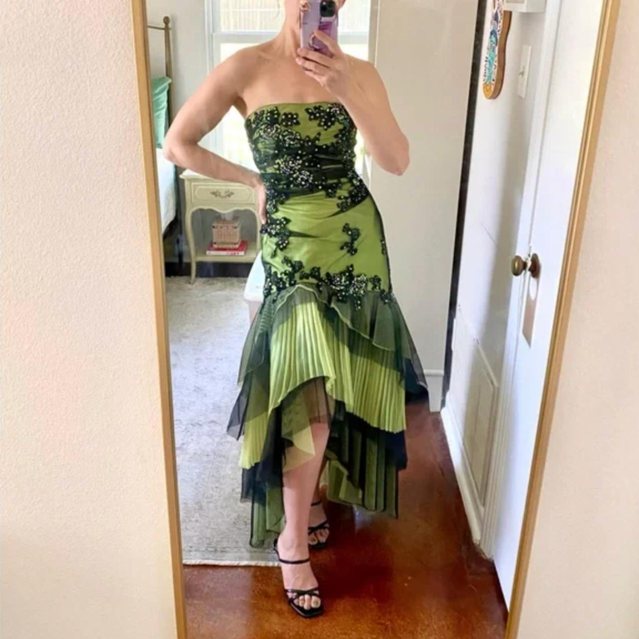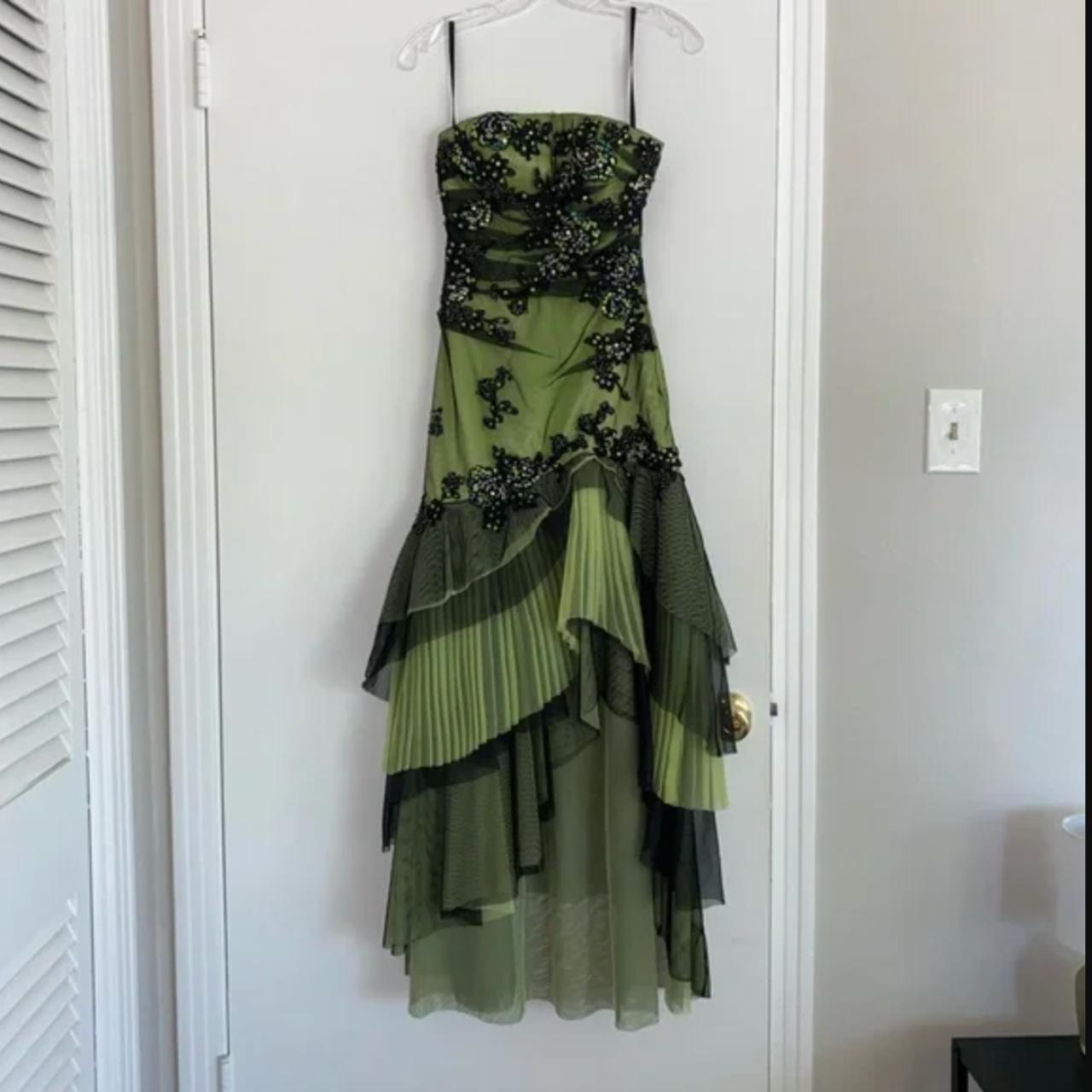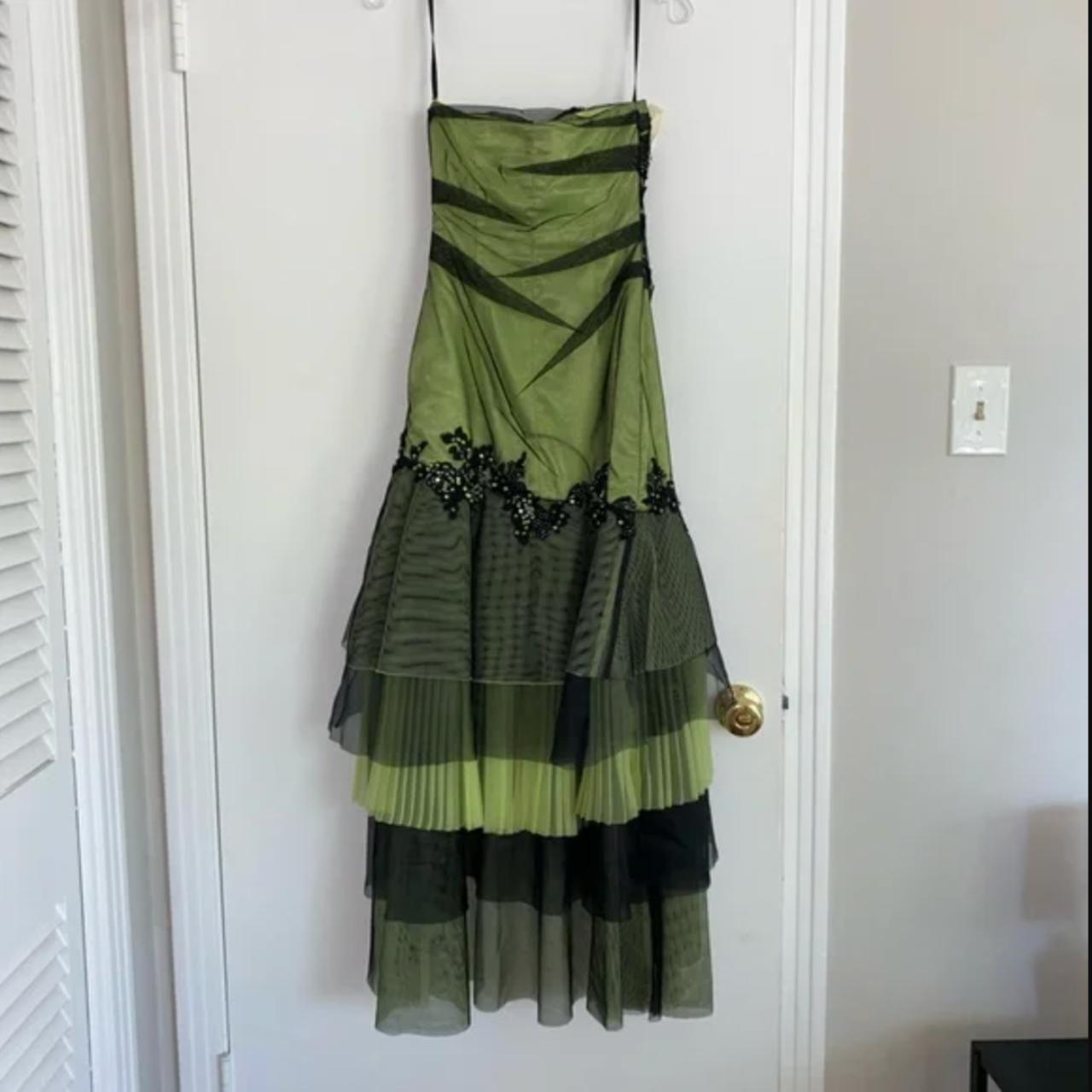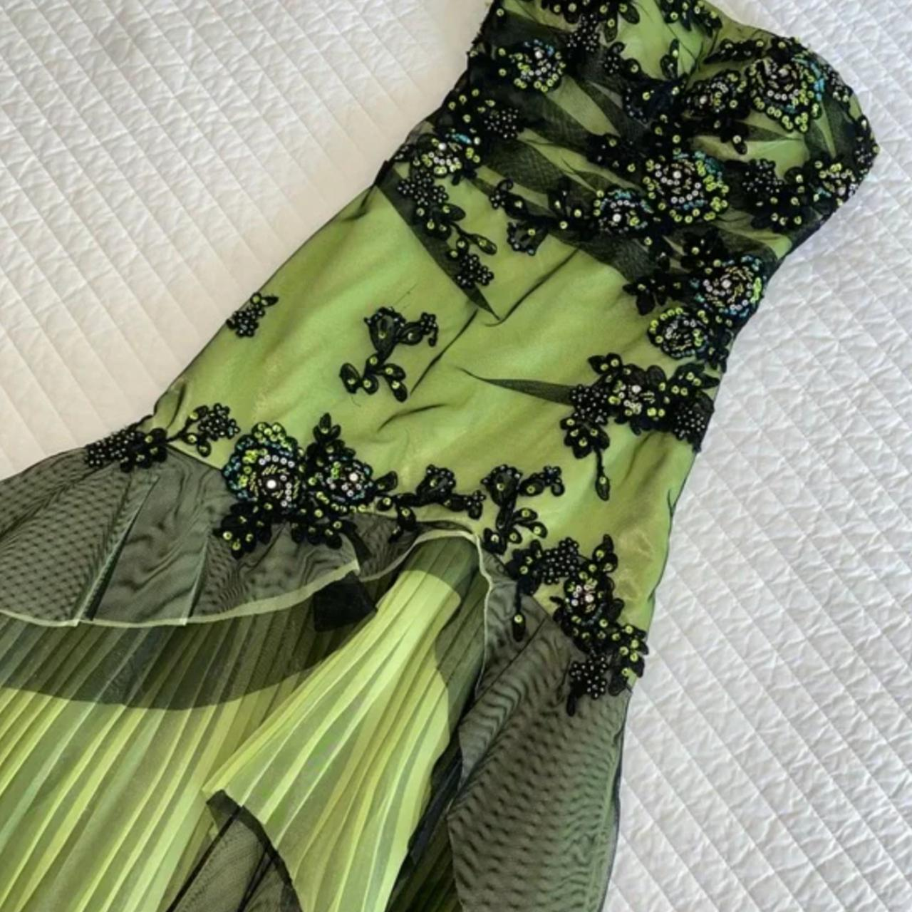 Vintage Strapless Green Tulle Sequin Appliques Long Birthday Party Dress Formal Prom Dress Y9717