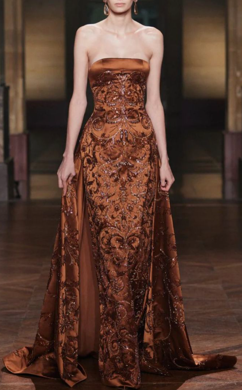 Vintage Strapless Satin Sequin Beaded Long Prom Dress Formal Evening Gown SP558