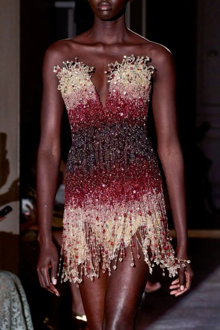 Vintage Strapless Sequin Beaded Tassel Sheath Short Homecoming Dress Birthday Dress Y9695