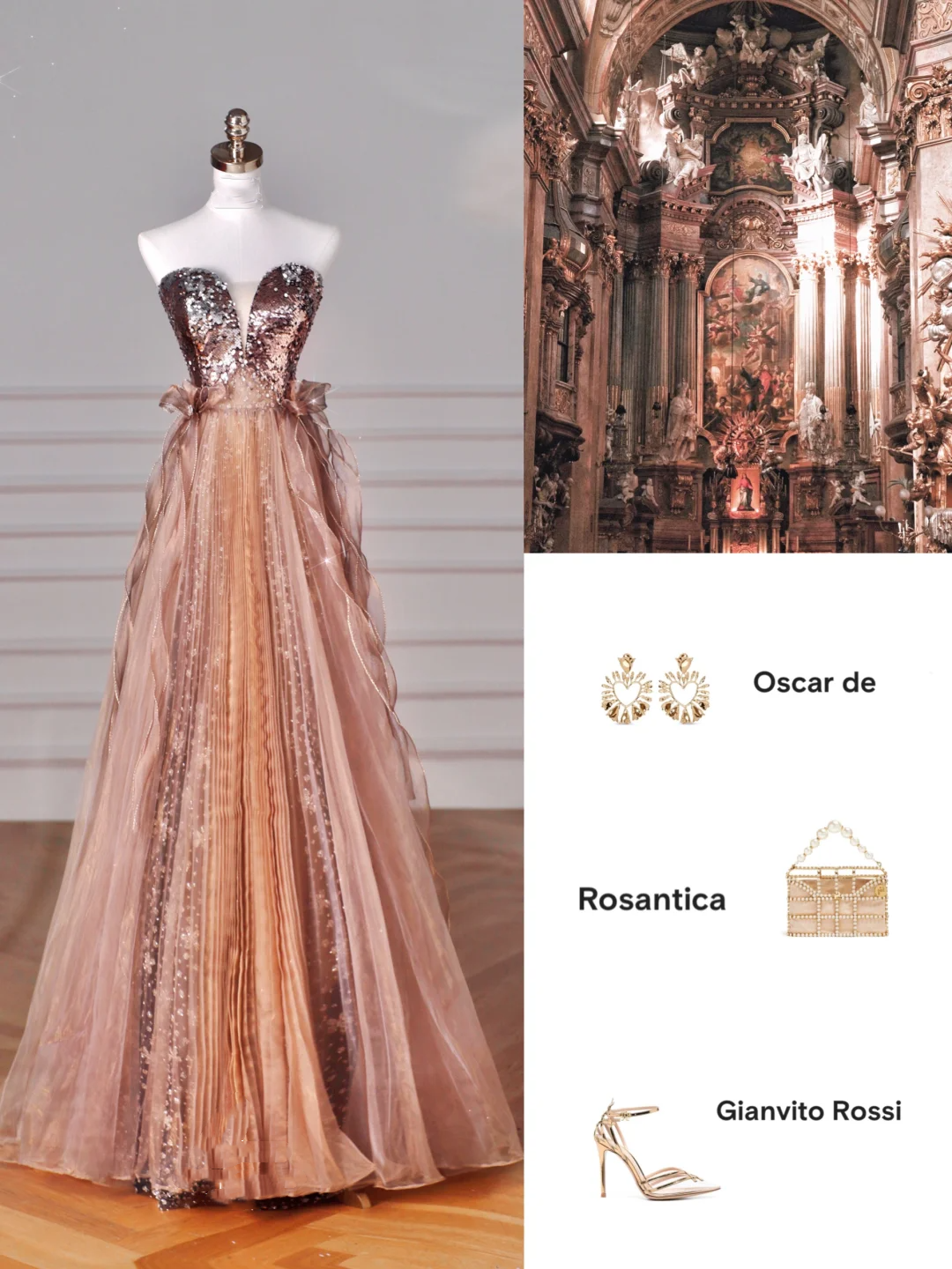 Vintage Rose Gold Strapless Tulle Sequins Beaded A Line Prom Dress Evening Dress Y8622