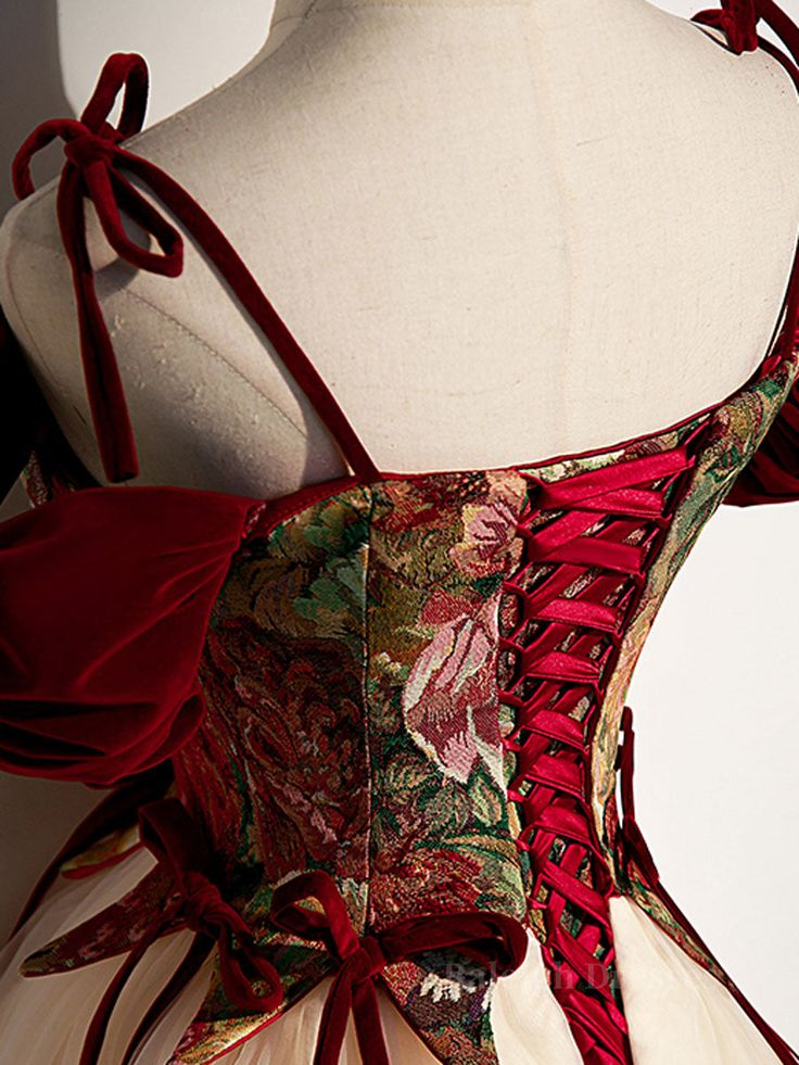 Vintage Tulle A Line Long Prom Dress Spaghetti Straps Evening Dress Ball Gown Y7662