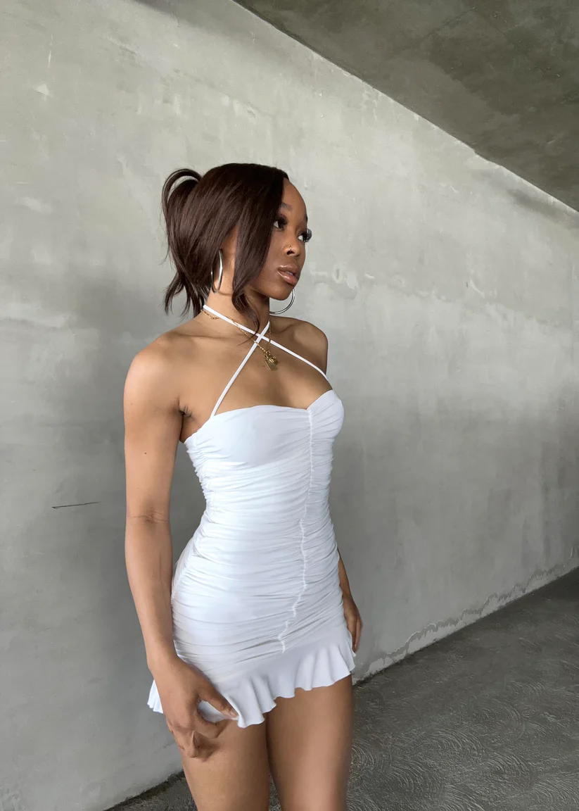 White Bodycon Dress With Ruched,White Mini Homecoming Dress,Y2443