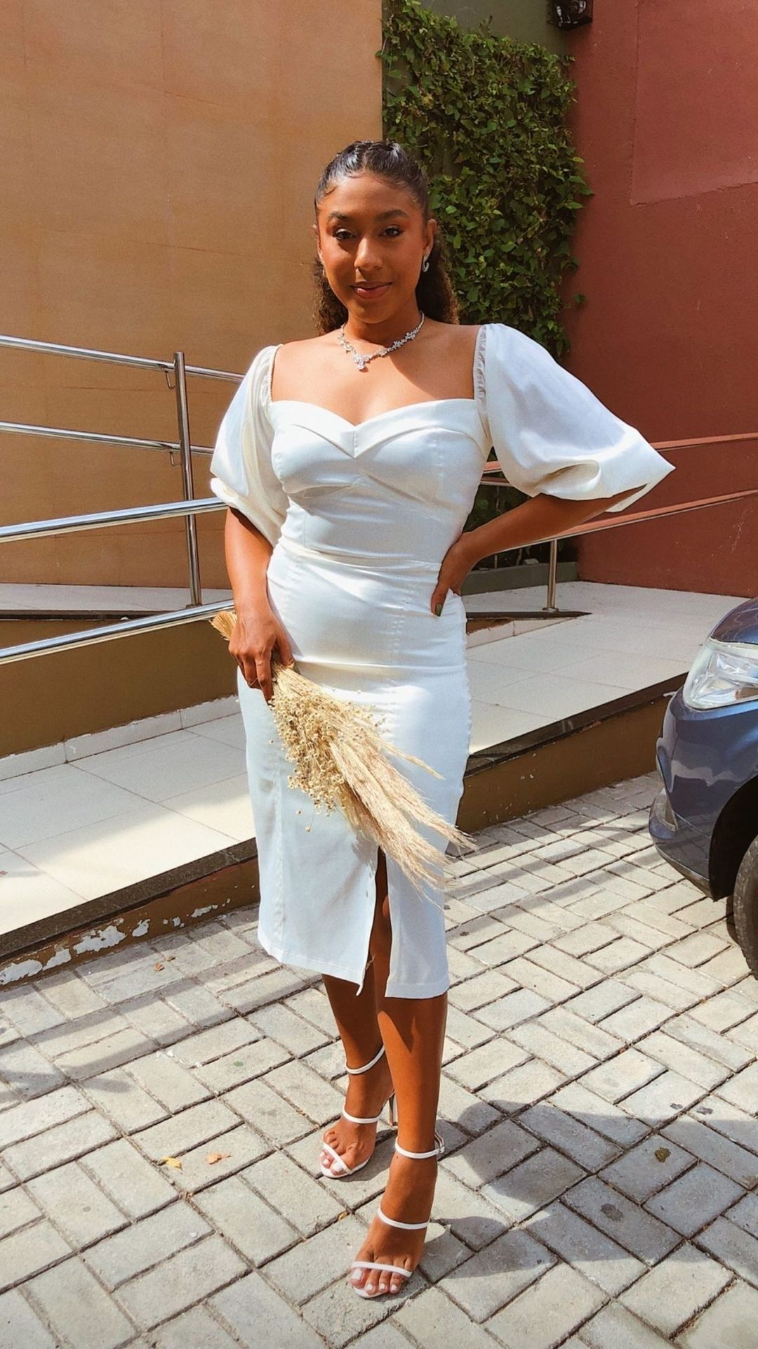White Sheath Midi-length Prom Dress,White Wedding Guest Dress Y5192